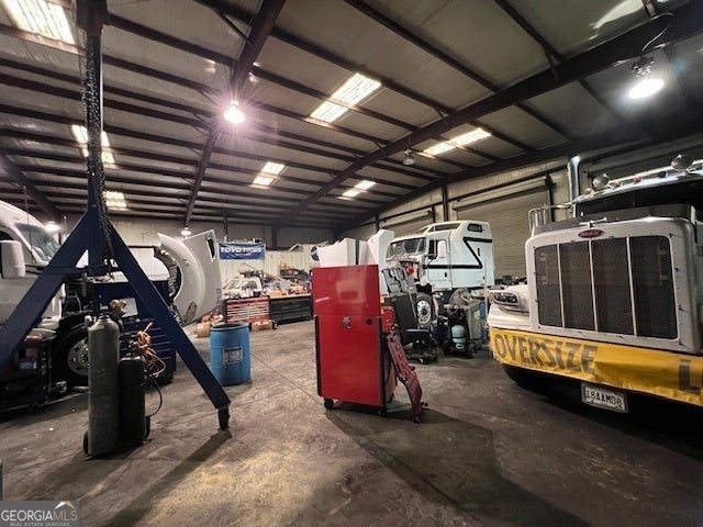 Building, Land, and Business For Sale for a prime investment opportunity, particularly someone looking to expand or start a diesel mechanic service for a semi-truck repair service center. The building was built in 2006 and consists of 9920 sf with apx 760 sf of office space. This build-out was designed with the perfect setup of all you will need for a semi-truck / auto service center. Key highlights include a clean customer waiting area and customer restroom, a spacious office working area, changing area, plus a bathroom with shower for the mechanics, multiple 12 ft x 12 ft roll-up doors (7 total: 3 in front, 4 in back) plus an additional 10 ft x 10 ft door for parts area. Oil changing pit, 3-phase electrical. Currently heated with an efficient oil-burning heater. The land consists of 1.80 acres and access from Hwy 46 with close proximity to I-20, ideal for logistics and transportation businesses. Utilized as a semi-truck repair service center for the past 18 years. Great opportunity for investors or businesses looking to expand their services in a high-demand area.