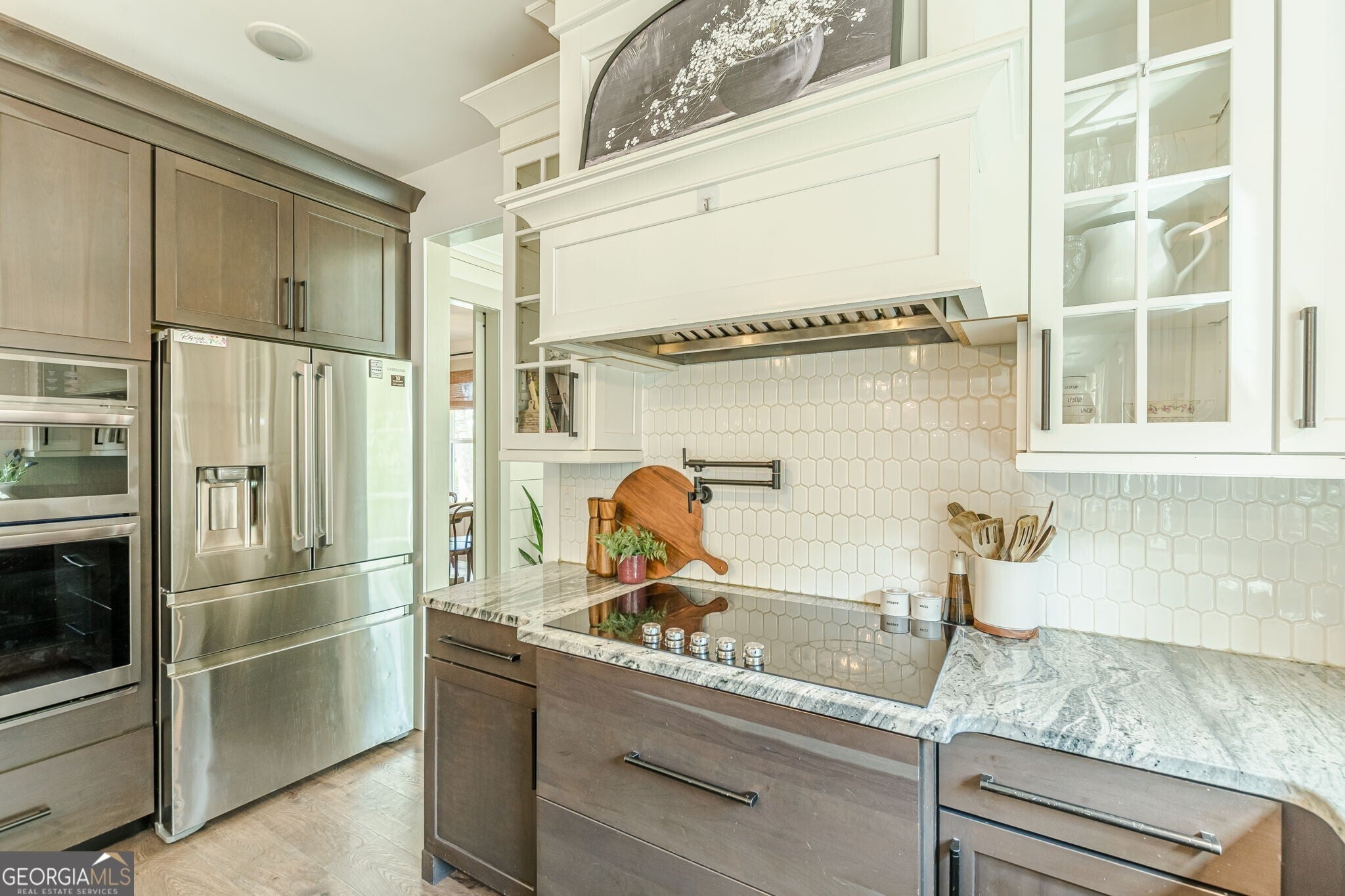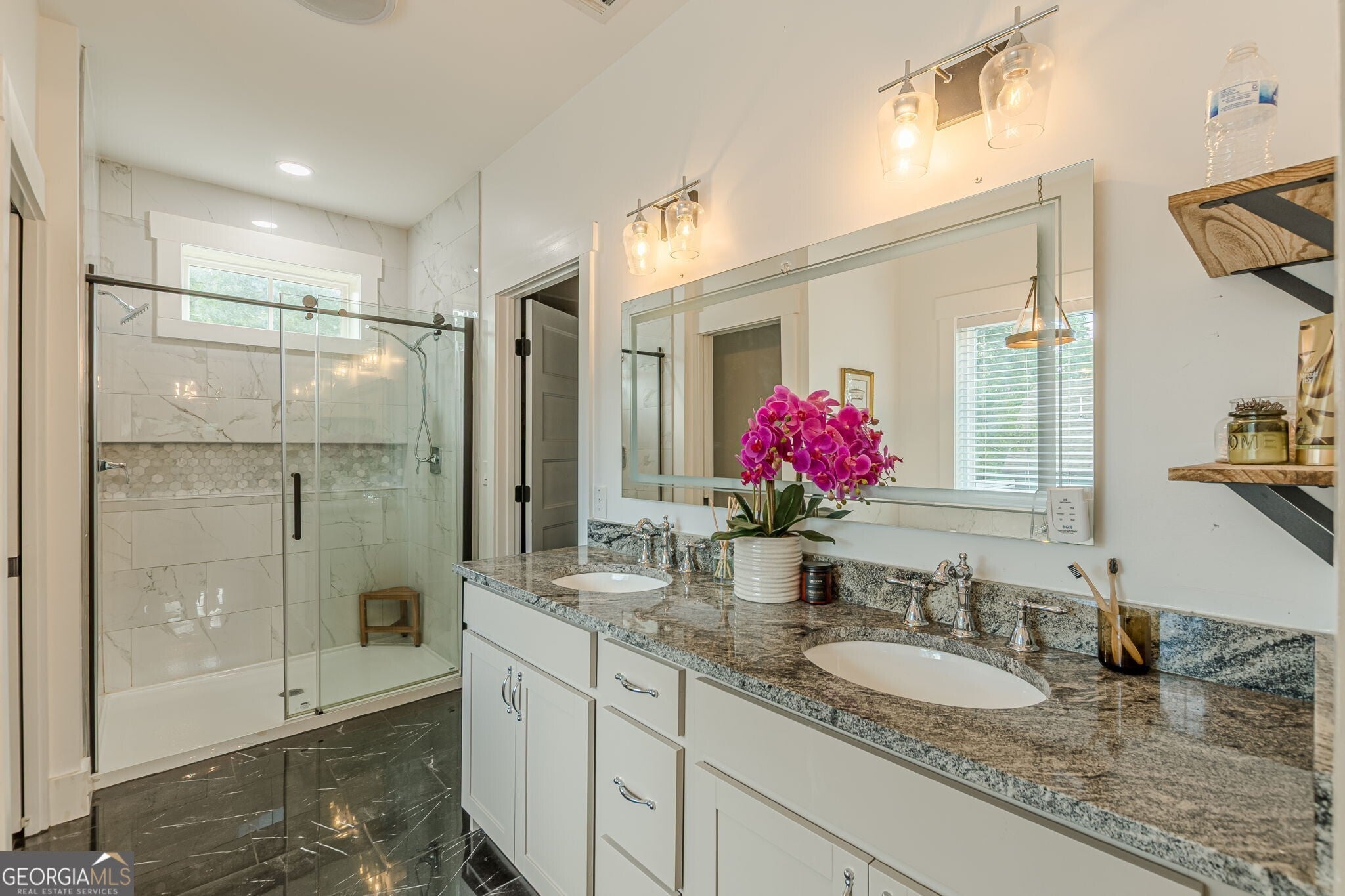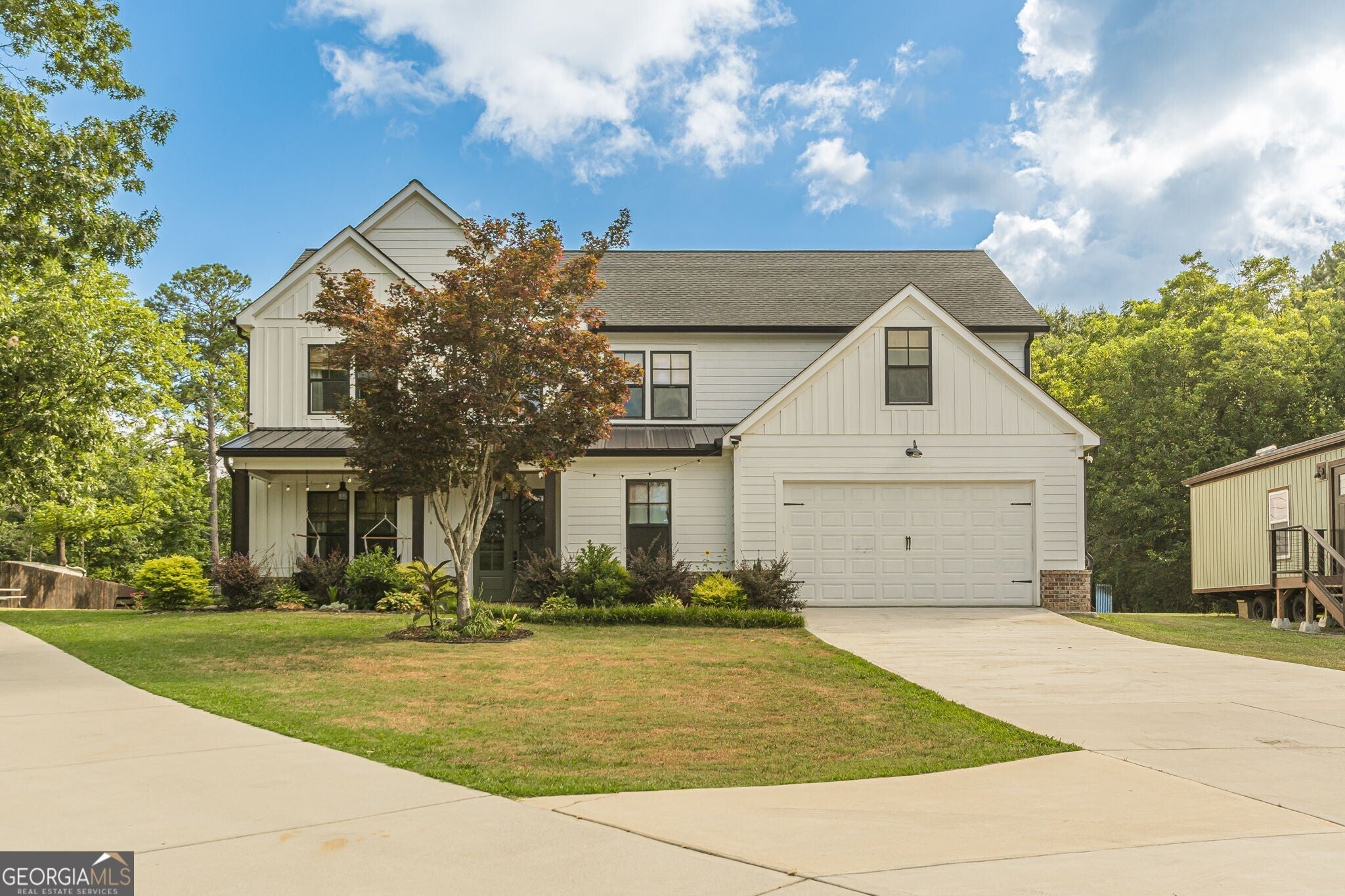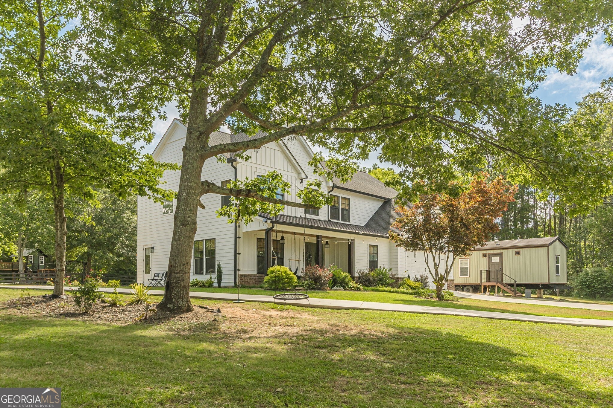 Peaceful and Serene, Private Gated Estate on 4.1 Acres with Guest House, Detached Garage & More! Welcome to this serene and private Craftsman-style estate, completed in 2020 and nestled on 4.1 beautiful acres. Thoughtfully designed with versatility, comfort, and luxury in mind, this property is truly a rare find! The main home is a stunning two-story residence featuring a welcoming front porch, charming foyer, and formal dining room with barn doors. The gourmet kitchen boasts custom cabinetry, granite countertops, a farmhouse sink, pot filler, and an oversized double island perfect for family gatherings. A spacious walk-in pantry, mudroom/coffee station, and second refrigerator add thoughtful convenience. The great room is designed for seamless entertaining, with custom built-ins, a cozy fireplace, and sliding glass doors that open to the outdoors for effortless indoor-outdoor living. Upstairs, the luxurious owner's suite offers a spa-like retreat with marble floors, a soaking tub with TV, dual shower, double vanities, and a large walk-in closet with automatic lighting. Four additional bedrooms, a bonus/5th bedroom, a dedicated craft room, and a flex room with a built-in children's play area offer abundant space for any lifestyle. The property includes a charming accessory dwelling unit (tiny home) -- complete with 2 bedrooms, 1 bath, a kitchen/living area, and stackable washer/dryer --ideal for in-laws, guests, or Airbnb income. A 36x26 detached garage/workshop includes a second-floor space already plumbed for a full bath - perfect for a small business, car enthusiast, studio, or home office. The estate also features a private fenced area for RV/boat storage, an adorable treehouse, and scenic wooded trails for peaceful walks. Enjoy privacy, space, and flexibility in this one-of-a-kind estate -- schedule your private tour today! Owner Transfer bring offers. Home is NOT in Foreclosure.
