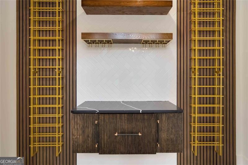 High Ceilings, Double Vanity, Soaking Tub, Master On Main Level, Vaulted Ceiling(s), Walk-In Closet(s), Tile Bath, Wine Cellar