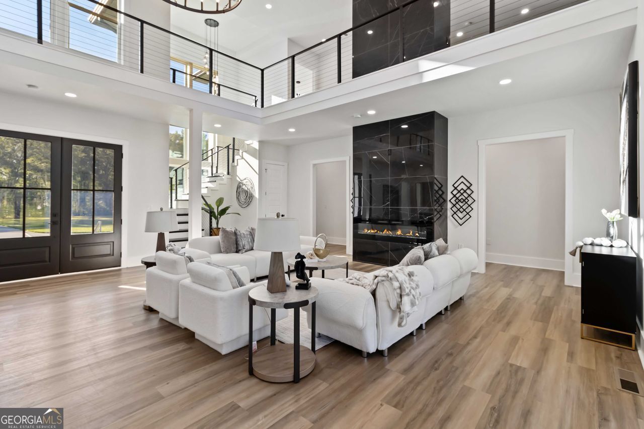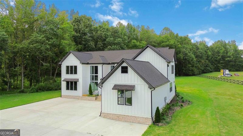 Imagine waking up to birdsong on nearly four acres of level, private land. Built in 2024, this 7,200+ sq ft custom estate blends quiet country living with refined luxury. Two owner's suites (main & upper), 5 BR/5.5 BA, chef's kitchen, soaring ceilings, open living, and a main-level office that can serve as a 6th bedroom. Media-ready loft, covered patio, upper deck, and 3-car garage behind a gated entry. Minutes to Downtown Covington's Historic Square for dining and boutiques; close to Ashton Hills Golf Club, Lake Varner, and everyday errands at Publix and Kroger. Easy I-20 access for Atlanta commutes. Seller offering a generous closing-cost contribution. Space, privacy, and modern comfort, an ideal forever home.